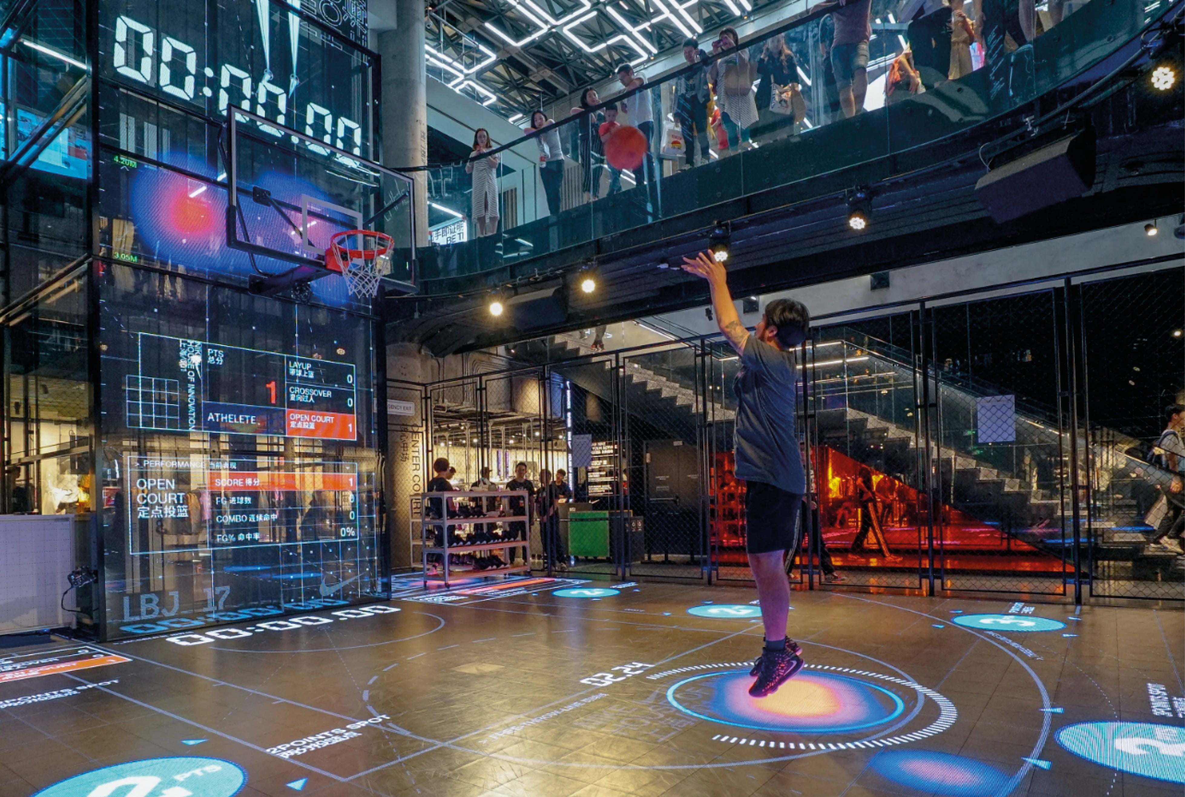 Nike, NYC. A digital basketball court that tracks your shots. The store becomes a stage. PwC says 43% of consumers visit stores for entertainment and experience.